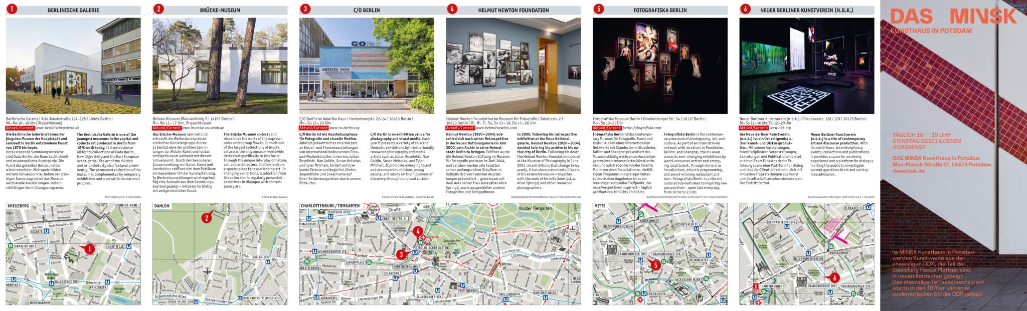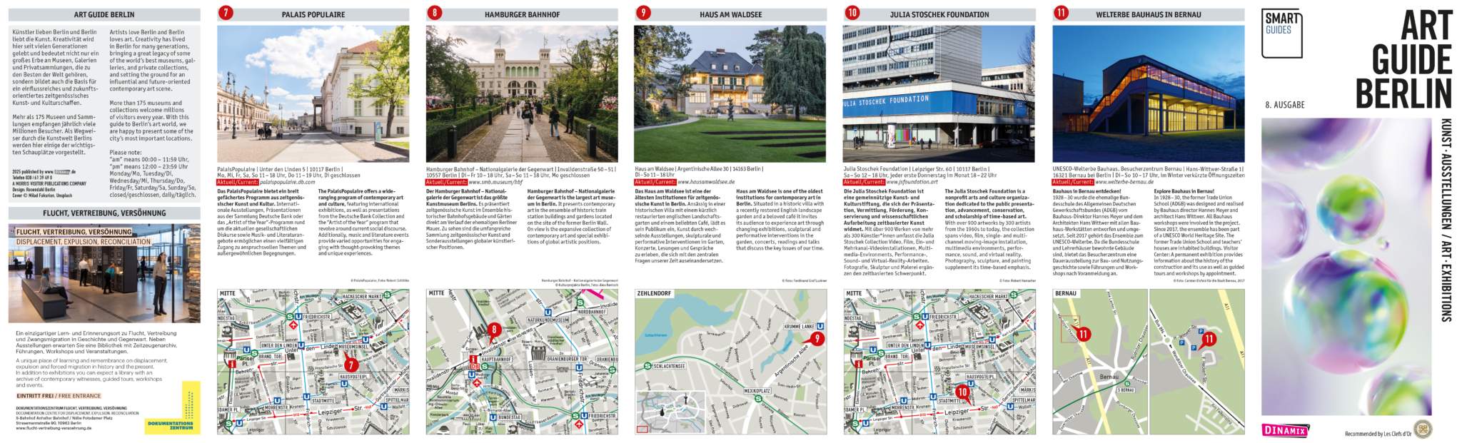 Für Berliner und Berlinbesucher gleichermaßen informativ sind DINAMIX Guides. Sie erscheinen zu verschiedenen Themen und sind in über 1.500 Locations zu finden. Die Stadtführer werden in Kultureinrichtungen, in Hotels, der Gastronomie und an vielen anderen relevanten Standorten im DINAMIX-Display platziert. Unsere Kuriere sichern eine kontinuierliche Präsenz. Sie haben nicht nur die Möglichkeit, mit Anzeigen besonders sichtbare Plätze zu belegen, sondern auch in Advertorials mehr Informationen zu vermitteln.